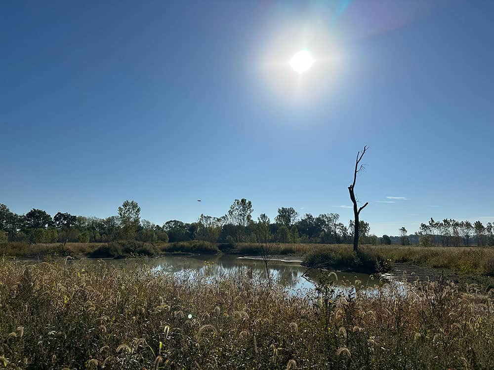 Kendrick Woods – Heron Hollow Wetland Access is a 59-acre natural area owned and managed by the Johnny Appleseed Park District, which acquired the property in the early 2000’s. Nestled along the scenic Auglaize River and adjoining both Kendrick Woods and Cottonwood Trail Access, this site serves as a vital connection in the region’s protected natural corridor. Thanks to support from the H2Ohio Grant Program, Heron Hollow has been carefully restored to include thriving wetland and riparian habitats, providing essential filtering for clean water and a haven for native wildlife. The area offers excellent opportunities for birdwatching and nature observation, with a variety of wetland species frequenting the site throughout the year.